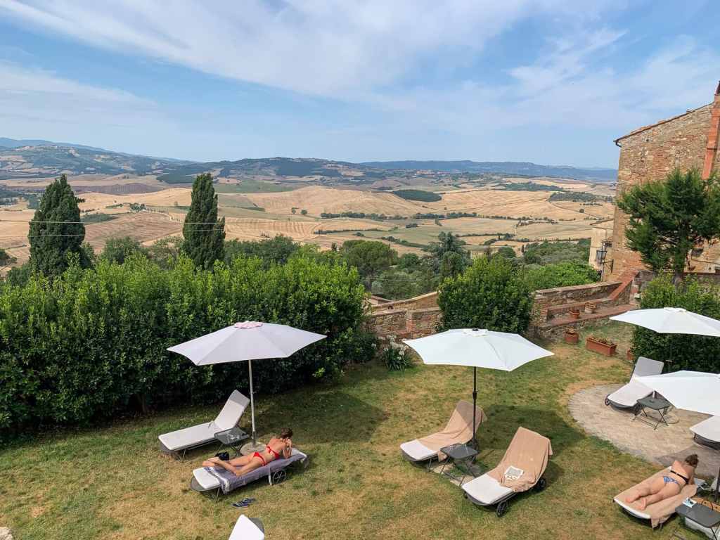 <li><strong>Relais Il Chiostro</strong>: This charming hotel in Pienza provides a peaceful retreat with beautiful gardens, an inviting pool, and incredible views of the hillside.  It's located in a former cloister, behind a somewhat hidden door so as to blend into the old town decor. </li>